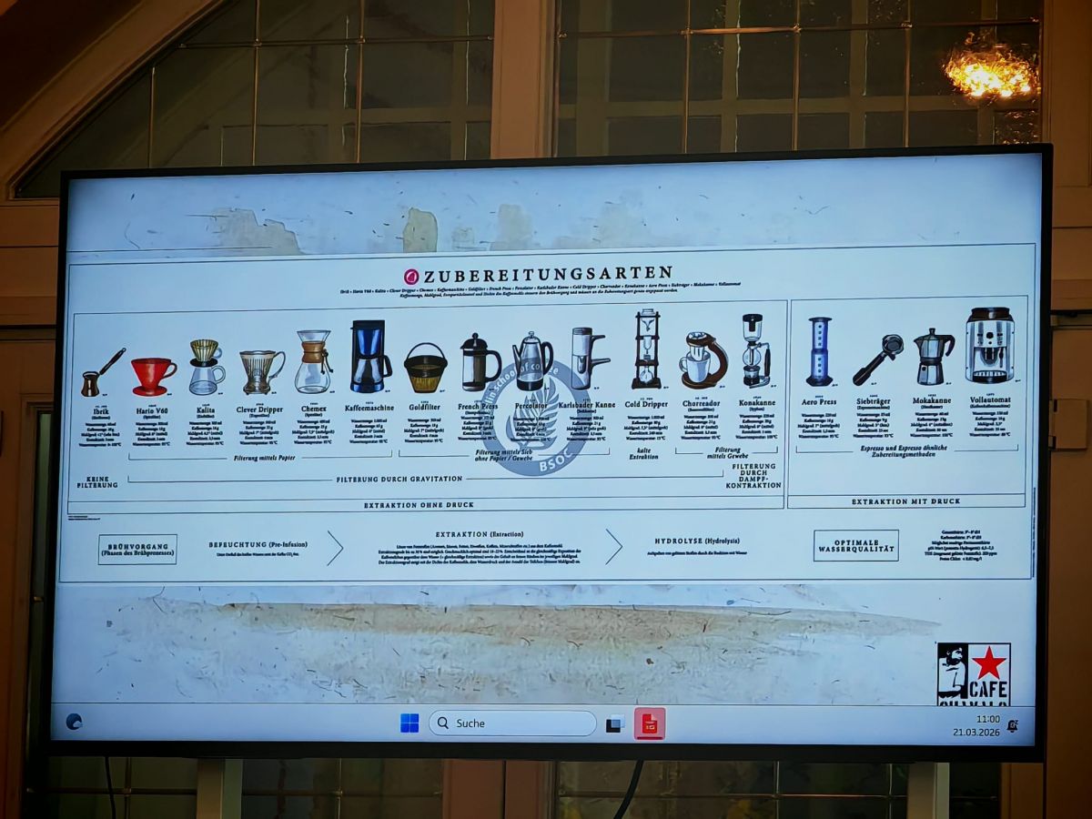 Am Samstag, dem 21.03.2026 fand das Treffen der Weltläden Eifel-Mosel-Hunsrück in Bitburg statt. 25 Teilnehmer*innen – alles ehrenamtlich Mitarbeitende aus Weltläden der Region – kamen zum Austausch über den fairen Handel in Bitburg zusammen. Jens Klein vom Café Chavalo Leipzig vermittelte viel Wissenwertes über Kaffee, Kaffeeanbau, -handel und -zubereitung und ließ die Teilnehmer aus der Geschmacksvielfalt auch probieren. Das Fair Handelszentrum Rheinland präsentierte neue Produkte insbesondere fair gehandelte Lebensmittel aus Italien.
